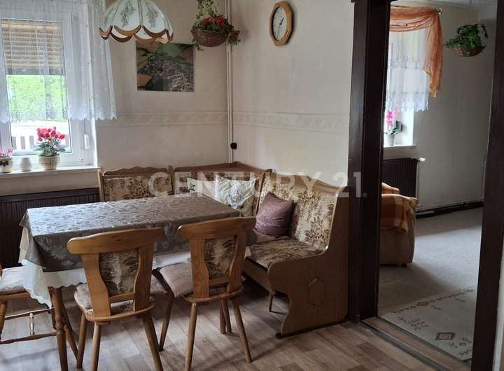 Die Raumaufteilung bietet eine solide Grundlage: Im Erdgeschoss finden Sie eine funktionale Küche, ein Wohnzimmer mit Kaminofen, der an kalten Tagen wohlige Wärme spendet, sowie einen praktischen Abstellraum mit Zugang zu einem kleinen Vorratskeller. Über die Diele gelangen Sie zur angrenzenden Holzscheune, einem älteren Badezimmer mit Badewanne, einer separaten Waschküche mit Dusche und WC, dem Heizungsraum und dem Zugang zum rustikalen Heuboden – ein spannender Bereich mit viel Lagerfläche.