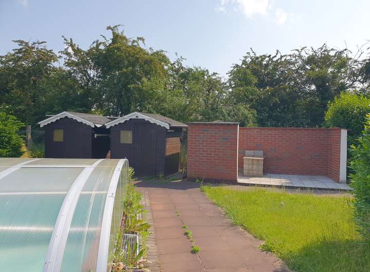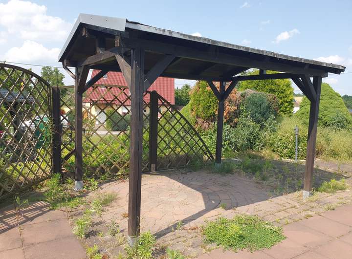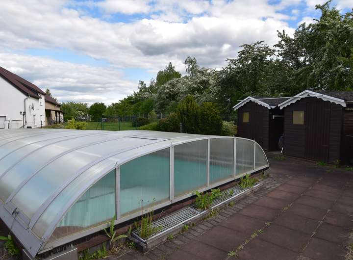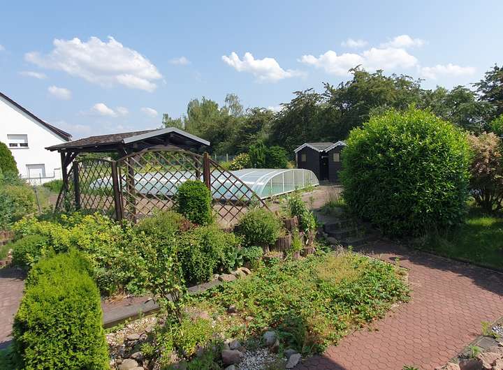 Auf dem ca. 1.633 m² Grundstück wurde ein überdachter Pool in der Größe 4 m x 10 m, ein überdachter Grillplatz, 2 Gartenhäuser und ein Carport errichtet.