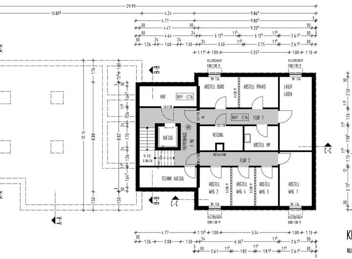 Anzahl Gewerbeeinheiten: Es kann zwischen 1-3 Gewerbeeinheiten gewählt werden. Die Baugenehmigung sieht den Bau von 3 Gewerbeeinheiten und 4 Wohneinheiten vor, allerdings lässt sich die Anzahl der Gewerbeeinheiten auf insgesamt eine Gewerbeeinheit im EG reduzieren, hierzu wurde bereits eine Nutzungsänderung eingereicht.