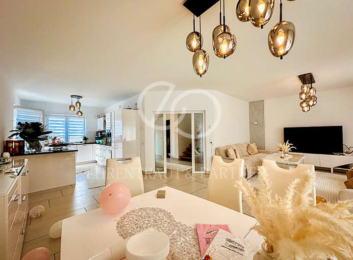Was erwartet Sie? Offene, lichtdurchflutete Räume. Dank neuesten Bau-Standards geringe Unterhaltskosten. Dachflächenfenster, viele bodentiefen Fenster, offene Raumkonzepte machen dieses Haus zu einem Erlebnis.