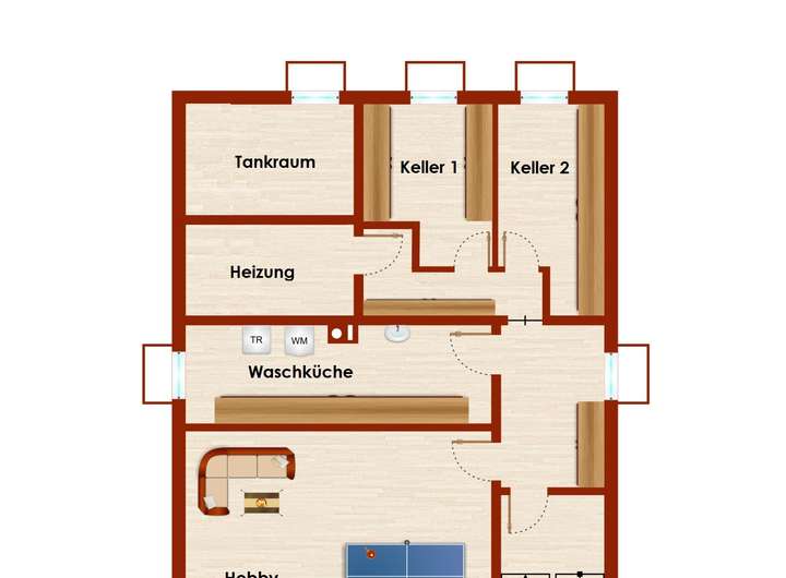 Jeder Wohneinheit ist eine Einzelgarage und ein eigener Kellerraum zugeteilt. Zu den Gemeinschaftsflächen gehören das Treppenhaus, eine Waschküche und der Heizungskeller.