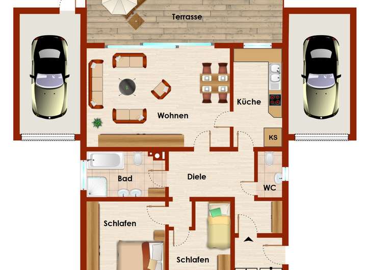 Freistehendes Zweifamilienhaus mit 2 Garagen