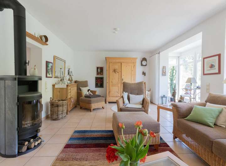 Die Immobilie wurde mit viel Liebe zum Detail eingerichtet und gepflegt. Große Fenster und Fensterfronten durchfluten alle Räume mit natürlichem Licht und betonen den hellen, freundlichen Charakter des Haues. Zwei Balkone sowie eine sonnige Terrasse bieten perfekte Rückzugsorte im Freien mit Blick ins Grüne.