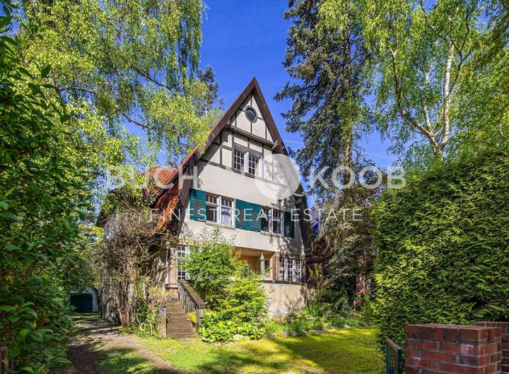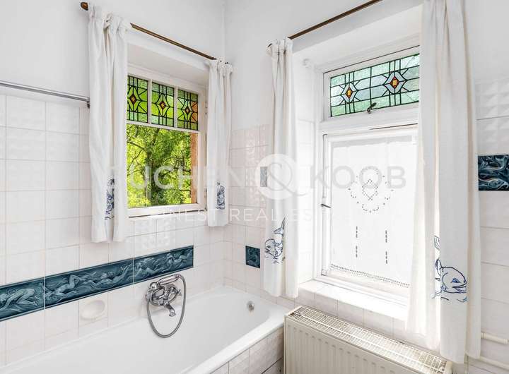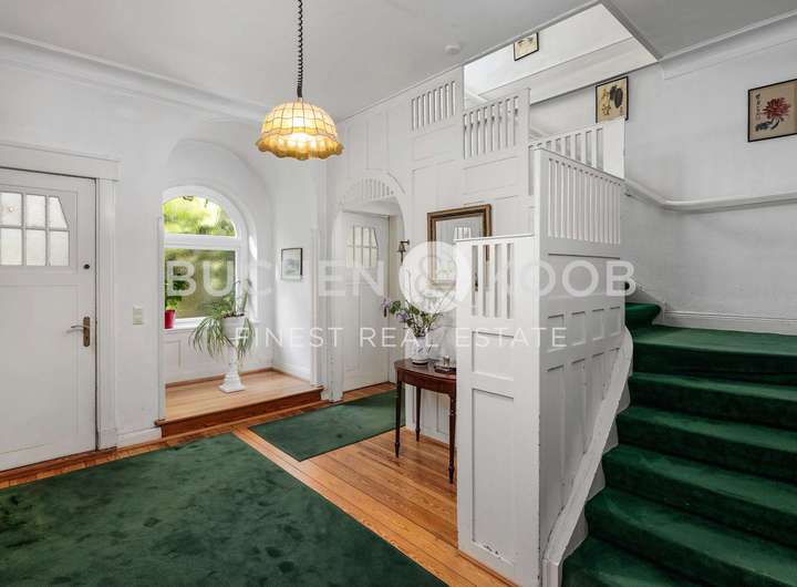 Jugendstil | Historische Stilelemente | hochwertige Parkettböden | Original Holztreppenhaus | Kamin | 5 - 6 Schlafzimmer | 1 Badezimmer zzgl. 3 WC´s | 2 Terrassen | 1 Balkon | Garten in Süd-west Ausrichtung | Historisches Garagenhaus | Gasheizung | Denkmalschutz