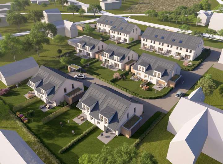 •Das Wohnareal LilienHof beherbergt 13 Reihenhäuser und 10 Doppelhaushälften