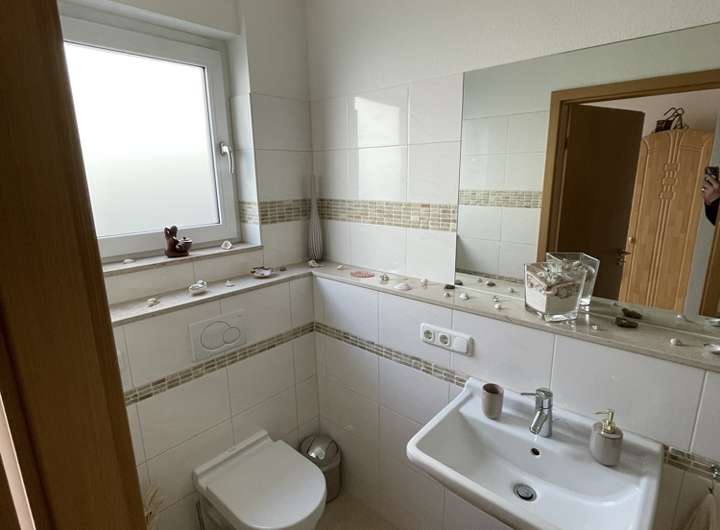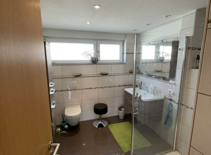 Neben dem Gäste-WC im EG stehen zwei weitere Bäder in OG und Staffelgeschoss (En-Suite) zur Verfügung.