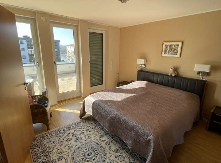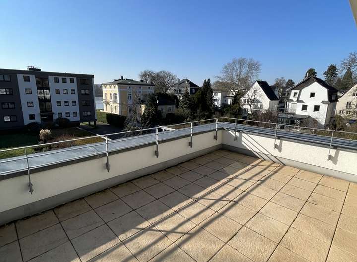 Besonderes Highlight ist der (potenzielle) Elternschlafbereich mit En-Suite-Badezimmer, Ankleideraum und XXL-Dachterrasse mit Blick auf den Rhein und Bad Godesberg.
