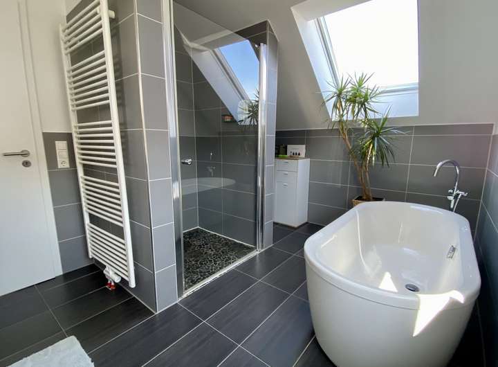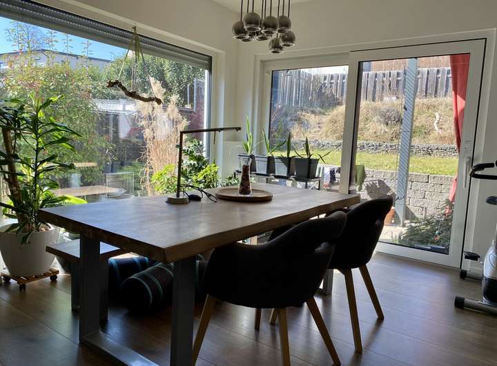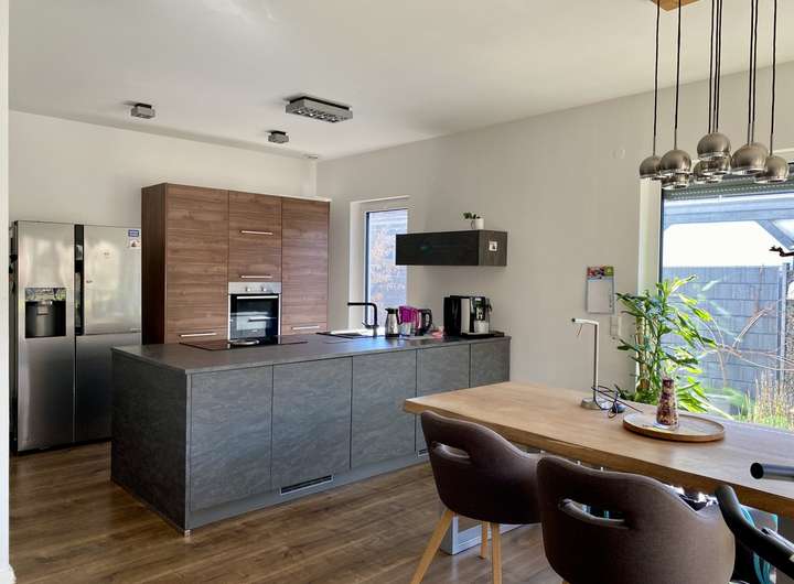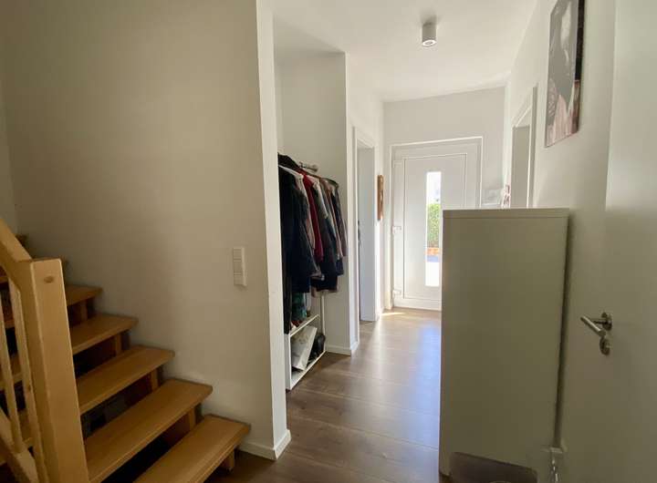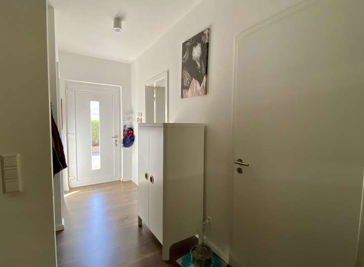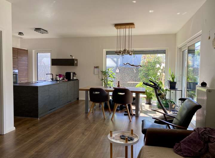 ! KEINE ZUSÄTZLICHE KÄUFERPROVISION ! Herzlich willkommen in Ihrem Traumhaus, welches 2017 in Fertigbauweise erstellt wurde. Genießen Sie die lichtdurchfluteten Räume und den direkten Zugang zum gepflegten Garten, der zum Entspannen und Verweilen im Freien einlädt. Das Erdgeschoss bietet durch die offen gestaltete Küche ein harmonisches und großzügiges Raumkonzept. Im Dachgeschoss erwarten Sie drei gemütliche Zimmer. Zwei moderne Badezimmer im Haus sorgen für Komfort und Funktionalität. Dank der modernen Lüftungsanlage bietet Ihnen das Haus ein sehr angenehmes Wohnklima. Es verfügt über eine hervorragende Dämmung und 3-fach verglaste Fenster, sodass Sie mit geringen Heizkosten rechnen können. Dieses Einfamilienhaus vereint modernes Wohnen mit Komfort und bietet Ihnen und Ihrer Familie ein Zuhause zum Wohlfühlen. Es wird aktuell noch von den Eigentümern bewohnt und kann nach Absprache ab August 2025 übernommen werden. Für einen ersten Eindruck senden wir Ihnen auf Anfrage gerne das komplette Exposé sowie einen Link zum 360°-Rundgang zu. Machen Sie sich selbst ein Bild von dieser Immobilie und vereinbaren Sie einen Besichtigungstermin! Wir freuen uns auf Sie!