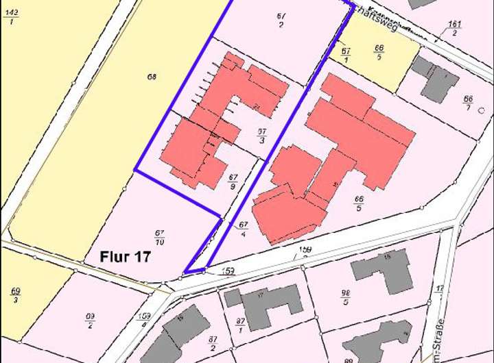 - ein angrenzendes Grundstück von rund 3.167 m² mit Bestandsgebäude