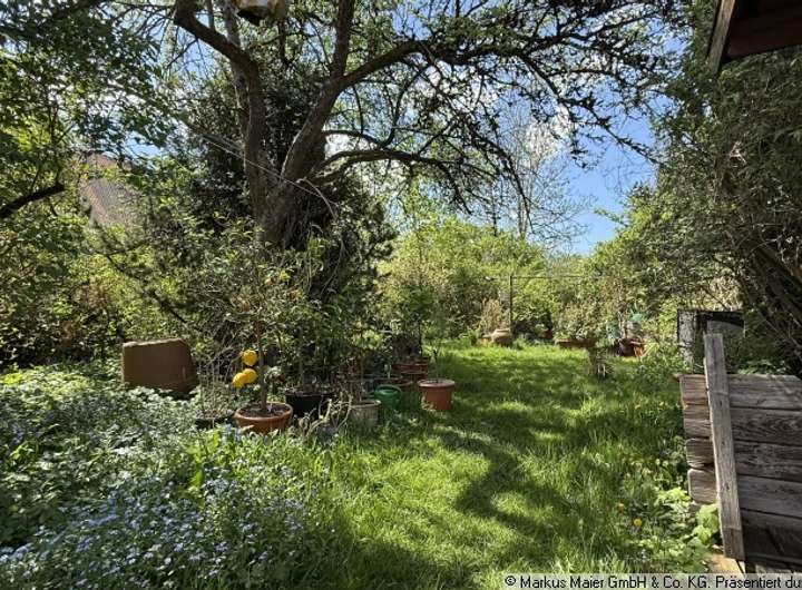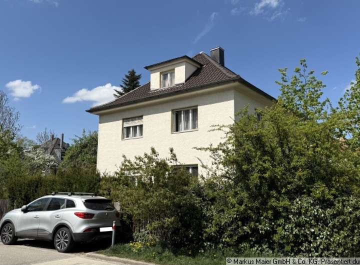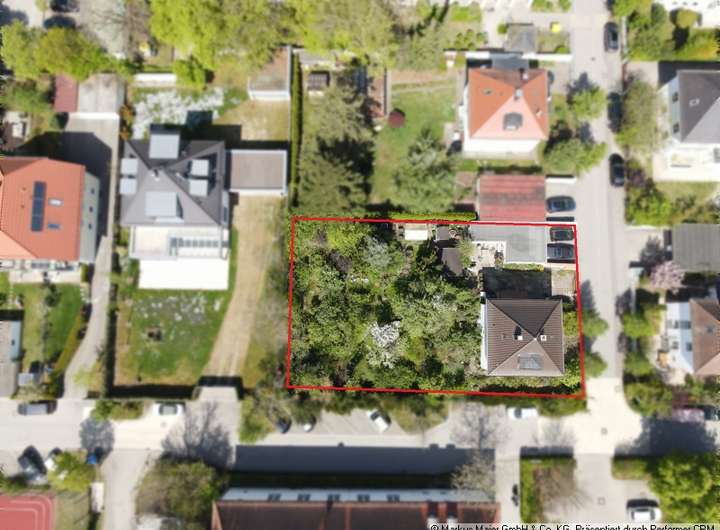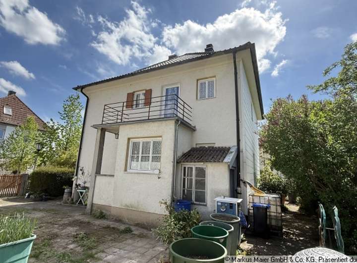 Aktuell ist es mit einem sanierungsbedürftigen Zweifamilienhaus sowie einer Doppelgarage bebaut. Eine Sanierung wäre zwar möglich, jedoch nicht empfehlenswert.