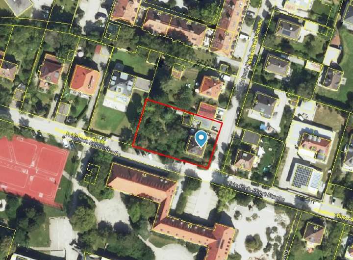 Alternativ wäre auch die Aufteilung des Grundstücks möglich. Die Bebauung könnte dann mit zwei Einfamilienhäusern oder Doppelhäusern erfolgen.