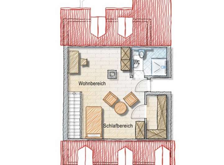 Die Wohnung erstreckt sich über zwei Ebenen: 3. OG und 4. OG.