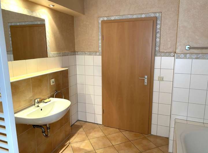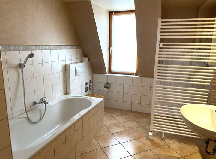 Tageslichtbad mit Wanne, Handtuchtrockner, WC und Waschmaschinenanschluss