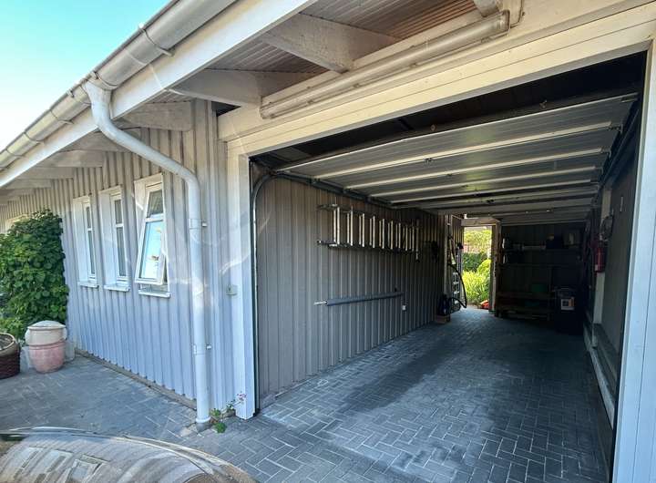- Geschlossenes Carport mit direktem Zugang in den Garten – komfortabel und wettergeschützt