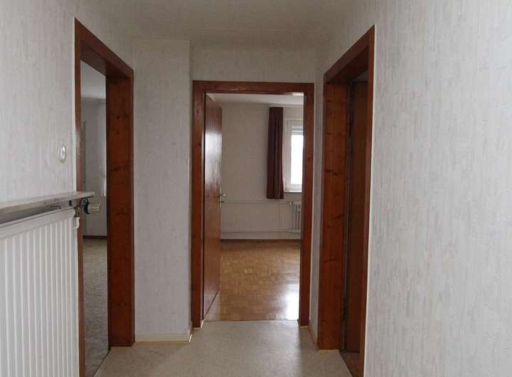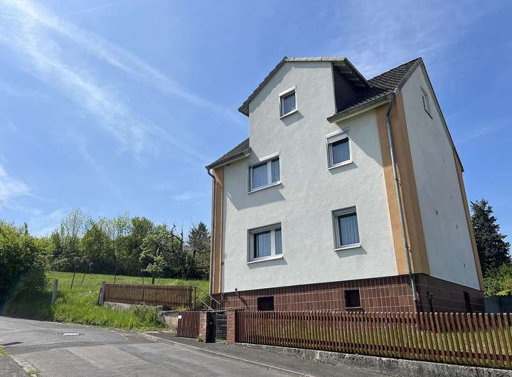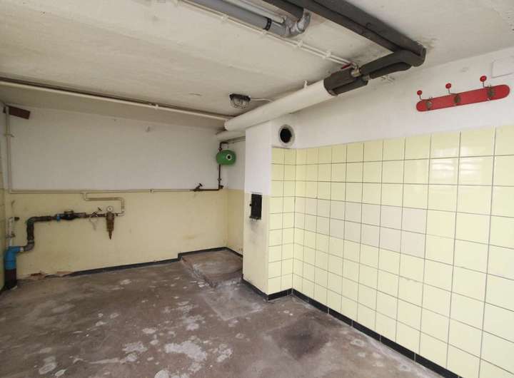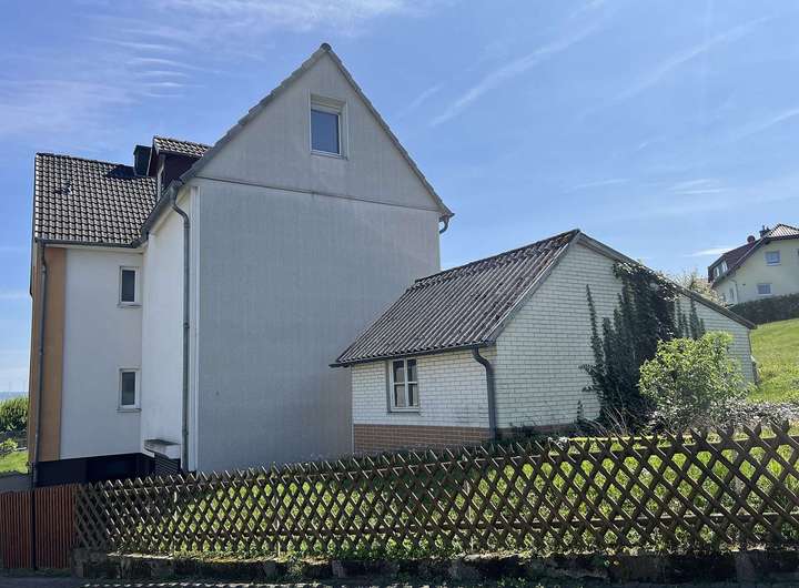 Das zweite Grundstück ist ca. 948 m² groß und bereits mit einem 2-Familienhaus bebaut, das um die Jahrhundertwende errichtet wurde. Das Gebäude bietet eine Gesamtwohnfläche von ca. 150 m², aufgeteilt in zwei identisch geschnittene Wohnungen mit jeweils drei Zimmern, einer Küche und einem Badezimmer. Zusätzlich ist das Haus vollständig unterkellert und verfügt über eine Kellergarage.