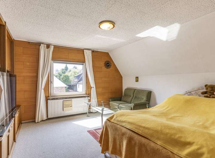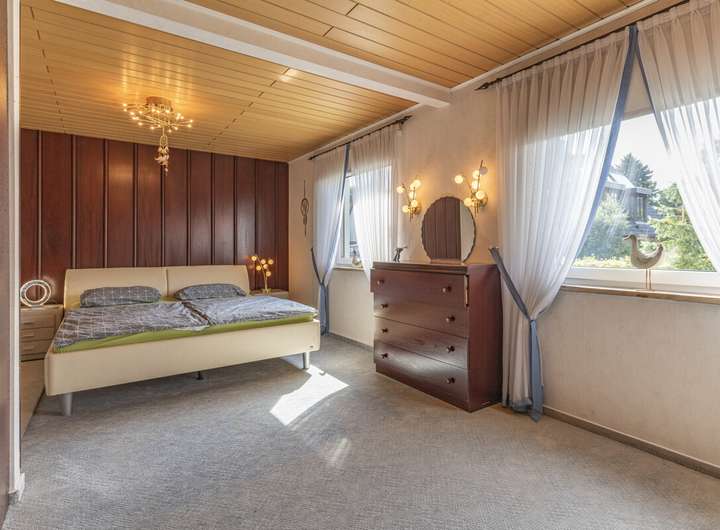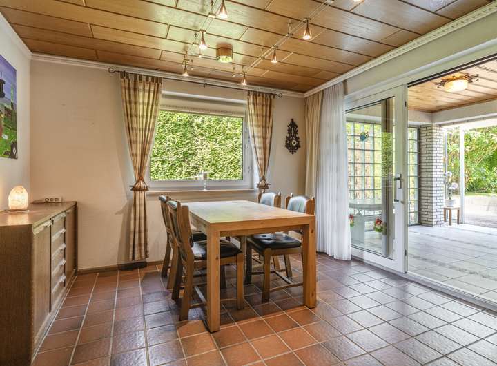 Diese liebevoll gepflegte Immobilie wurde im Jahr 1937 errichtet und 1980 durch einen Anbau erweitert. Im Zuge dessen erfolgte eine umfassende Sanierung des Altbaus. Beim Betreten des Hauses empfängt Sie ein kleiner Windfang, der in die großzügige Diele übergeht. Von hier aus sind alle Räume des Erdgeschosses bequem erreichbar. Rechter Hand befindet sich das geräumige Schlafzimmer mit vielfältigen Stellmöglichkeiten. Die große Küche begeistert Hobbyköche mit viel Platz für eine gemütliche Essecke. Der Wohn- und Essbereich bildet das Herzstück des Hauses – ideal für gesellige Abende oder entspannte Stunden mit der Familie. Der angrenzende Wintergarten ist besonders an kühleren Tagen eine schöne Alternative zum Garten. Abgerundet wird das Raumangebot im Erdgeschoss durch das große Vollbad, ausgestattet mit separater Dusche und Doppelwaschbecken. Das Dachgeschoss bietet zwei weitere gut geschnittene Schlafzimmer, ideal als Kinder-, Gäste- oder Arbeitszimmer, sowie ein separates WC. Der Anbau ist voll unterkellert und bietet reichlich Stauraum. Die Haustechnik findet hier ebenfalls Platz. Das 987 m² große Grundstück liegt ruhig und ist pflegeleicht angelegt – ein Paradies für Gartenfreunde und Erholungssuchende.