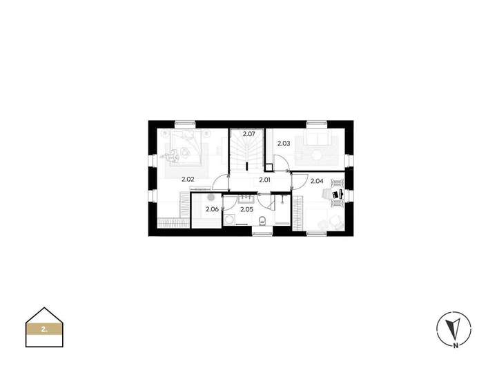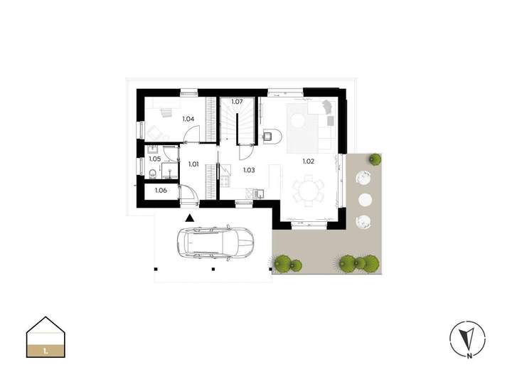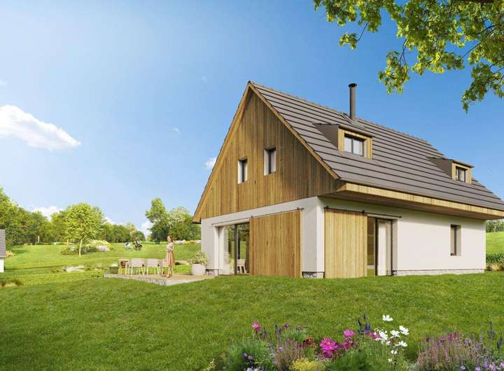 Der Entwurf berücksichtigt eine Vielzahl an Premium-Features, darunter eine Holzfassade am Giebel, ein überdachter Carport, große Glasflächen, ein Kaminofen sowie die Vorbereitung für eine Sauna und eine Solaranlage. Das Haus ist für moderne Smart-Home-Technologien vorgesehen, die an ein zentrales System angeschlossen werden, über das der Zugang, die Sicherheit, die elektrische Heizung und die Beleuchtung aus der Ferne gesteuert und optimiert werden können.