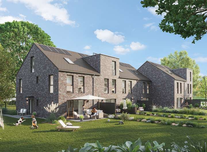Der erste BA: Die Vorzüge des Wohnensembles ‚GreenVillages‘ liegen nicht nur in der kleinen Einheit — sondern auch in der besonders schönen Naturlage im Stadtteil Harksheide. Die 6 Reihenhäuser