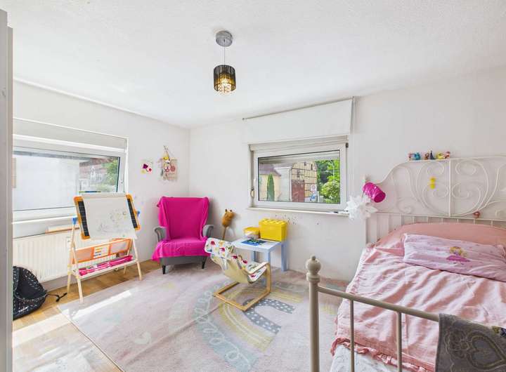Trotz der soliden Grundsubstanz weist die Immobilie einen gewissen Sanierungsstau auf. Gleichzeitig eröffnet sie vielfältige Möglichkeiten zur individuellen Neugestaltung – sei es zur Verbesserung des Wohnkomforts oder als langfristige, wertstabile Investition.