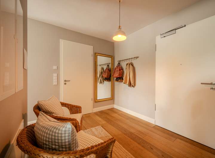 Praktisch ist auch der vorhandene Hauswirtschaftsraum, der auf Wunsch problemlos in ein zusätzliches Gäste-WC umgewandelt werden kann. Das schafft zusätzliche Flexibilität und erweitert die Nutzungsmöglichkeiten der Wohnung auf intelligente Weise.