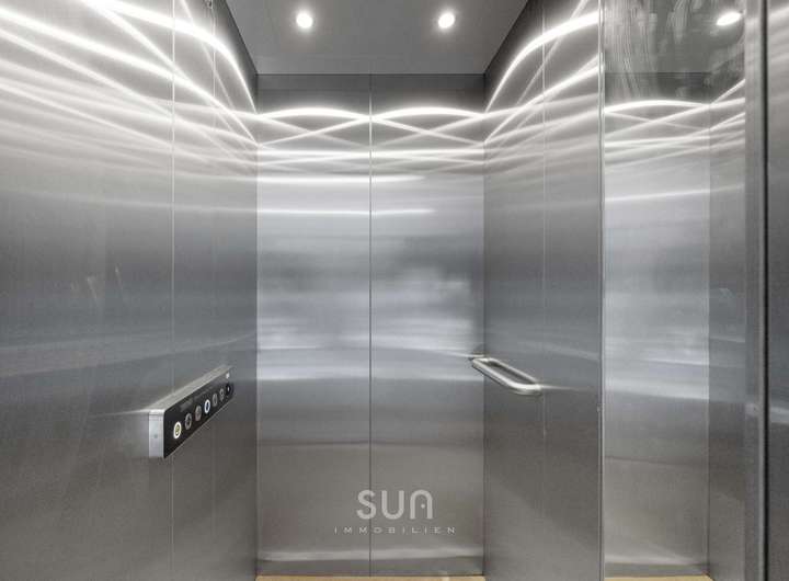 Der Aufzug, welcher mit einem Chip-System für jede Etage ausgestattet ist, unterstreicht das hohe Maß an Privatsphäre und Komfort.
