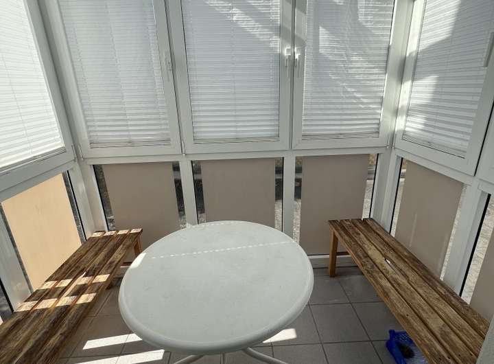 Zwei dieser Zimmer bieten Zugang zu einem verglasten Balkon, eine Seite ist als Wintergarten gestaltet und bleibt damit auch an kühleren Tagen nutzbar.