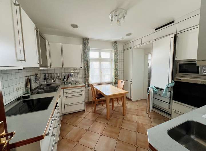Wieder zurück im Haus lässt die geräumige Küche keine Wünsche offen. Hier gibt es genügend Platz zum Kochen, Backen und geselligen Beisammensein. Besonders praktisch ist die angrenzende Speisekammer, die mit viel Stauraum überzeugt.