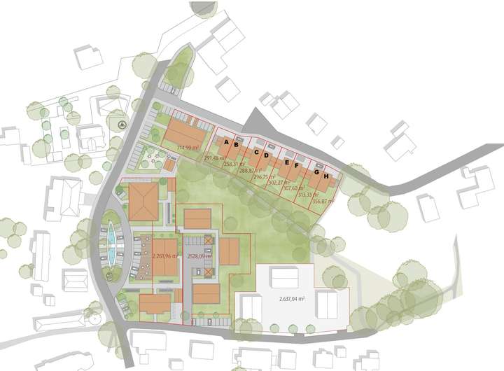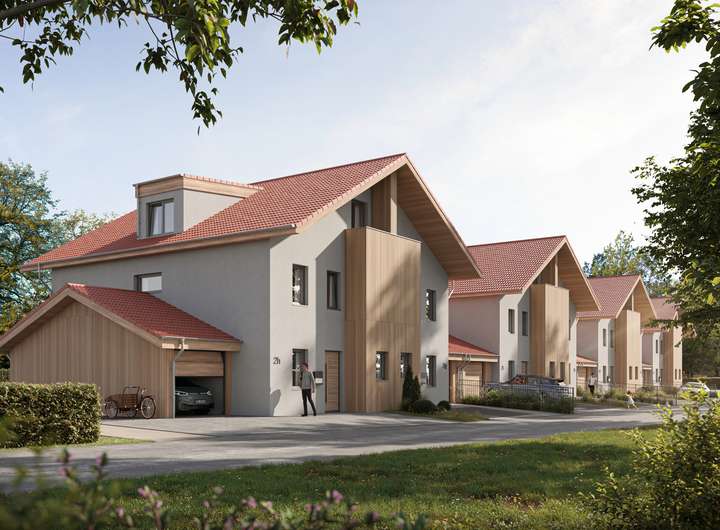 In direkter Umgebung der Doppelhaushälften entstehen im neuen Ortskern von Bad Heilbrunn zusätzlich Eigentumswohnungen.