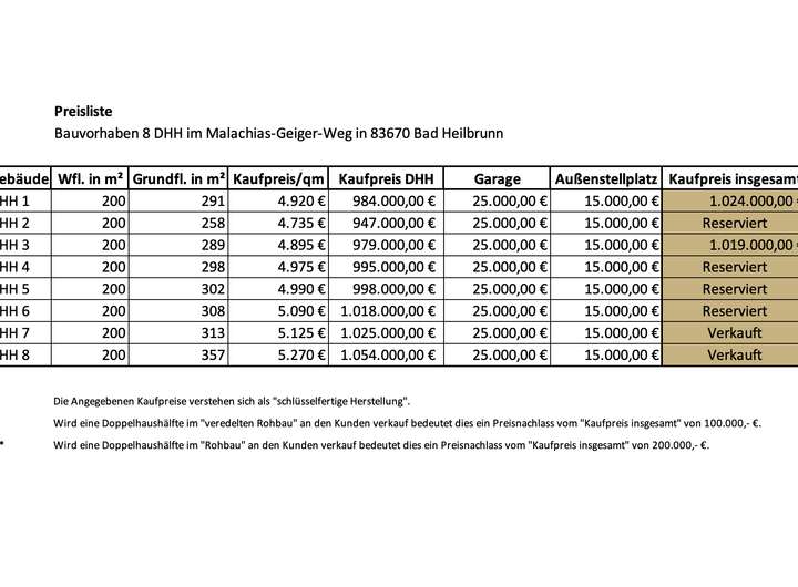 Es besteht jedoch auch die Möglichkeit, eine Doppelhaushälfte im „veredelten Rohbau“ mit einem Preisnachlass von 100.000 € auf den Gesamtkaufpreis oder im „kompletten Rohbau“ mit einem Preisnachlass von 200.000 € auf den Gesamtkaufpreis zu erwerben.