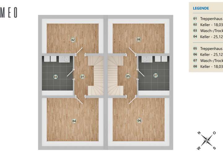 Zusätzlich zu den ca. 186 m² Wohnfläche im Erdgeschoss, Obergeschoss und Dachgeschoss werden die Doppelhaushälften mit einem Keller gebaut, der über ca. 60 m² Nutzfläche verfügt.