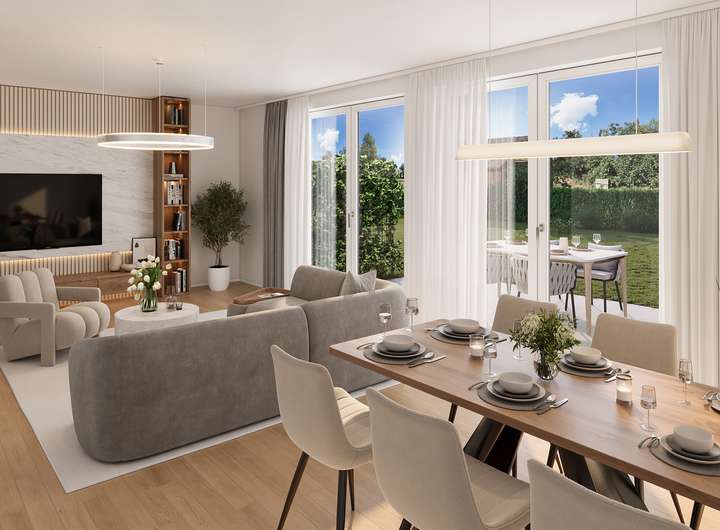 Offenes Wohnen | Fußbodenheizung | Wärmepumpe mit Kühlfunktion im Sommer | Bodentiefe Fenster | bodenebene Dusche | moderne Fliesen oder Vinyl | offenes Wohnen | Tageslichtbäder | 4 individuell gestaltbare Zimmer | Stromanschluss in der Garage zur Vorbereitung der Elektromobilität
