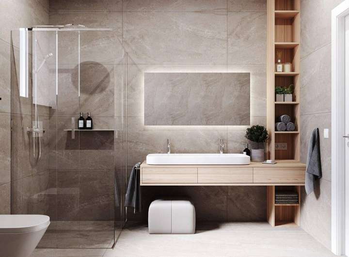 Der Entwurf berücksichtigt hochwertige Ausstattung wie eine holzverkleidete Giebelfassade, eine eigene Garage, große Glasfronten, einen Kaminofen sowie die Vorbereitung für eine Solaranlage. Das Haus ist mit moderner Smart-Home-Technologie ausgestattet, die an ein zentrales System angebunden ist und die Fernsteuerung von Zutritt, Sicherheit, elektrischer Heizung und Beleuchtung ermöglicht.