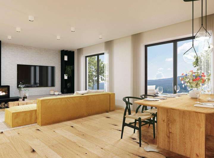 Das Objekt wurde von einem renommierten Architekturbüro entworfen – im Einklang mit der traditionellen Šumava-Architektur und mit Fokus auf hochwertige Baumaterialien. Das Erdgeschoss jeder Einheit verfügt über ein geräumiges Entrée mit Zugang zur Garage und ein separates WC. Daran schließt sich ein großer Wohnbereich mit Küche, Essbereich und Zugang zu einer wunderschönen Terrasse mit einzigartigem Blick auf den Lipno-Stausee an. Im Dachgeschoss befinden sich ein Hauptschlafzimmer mit eigenem Bad, zwei weitere Zimmer, ein Abstellraum sowie ein weiteres Badezimmer mit Vorbereitung für eine Sauna.