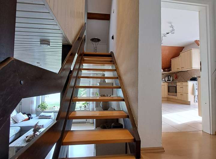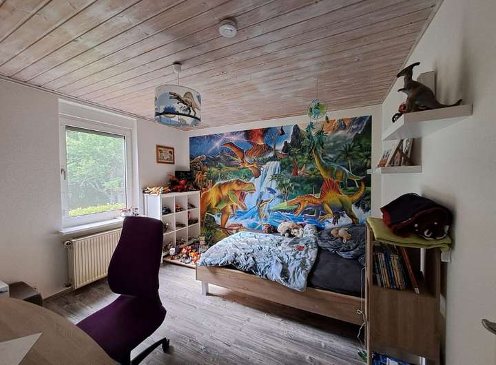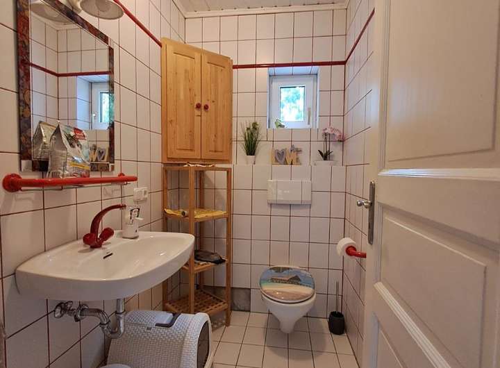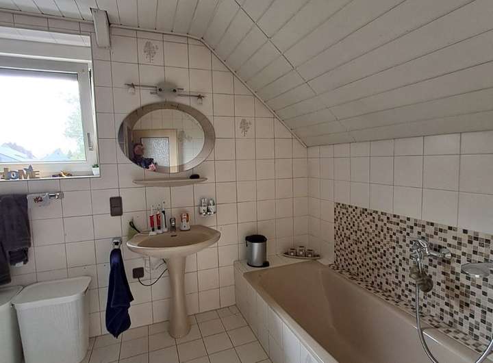 Ergänzt wird das Objekt durch einen weiteren Anbau aus den Jahren 1960 und 1990, der teilweise unterkellert ist. Dieser Bereich ist eigenständig nutzbar und eignet sich ideal als separate Wohneinheit oder zur Vermietung. Die Wohnfläche verteilt sich hier auf Erdgeschoss, Obergeschoss und Dachgeschoss und umfasst fünf Zimmer, Gäste-WC, Küche und Bad.