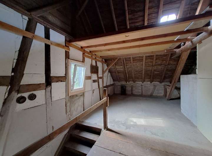 Das Haupthaus verfügt über eine klassische Raumaufteilung mit Küche und drei Zimmern, die sich auf Erdgeschoss und Obergeschoss verteilen. Ein zusätzlicher Abstellraum sowie ein separates Dusch-WC sind vorhanden. Der Dachspitzboden ist aktuell nicht ausgebaut und eröffnet weitere Gestaltungsmöglichkeiten. Das Haus ist voll unterkellert.