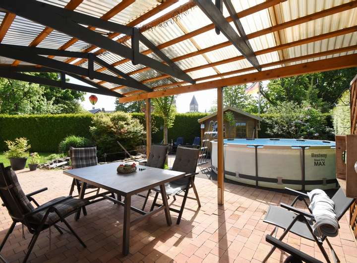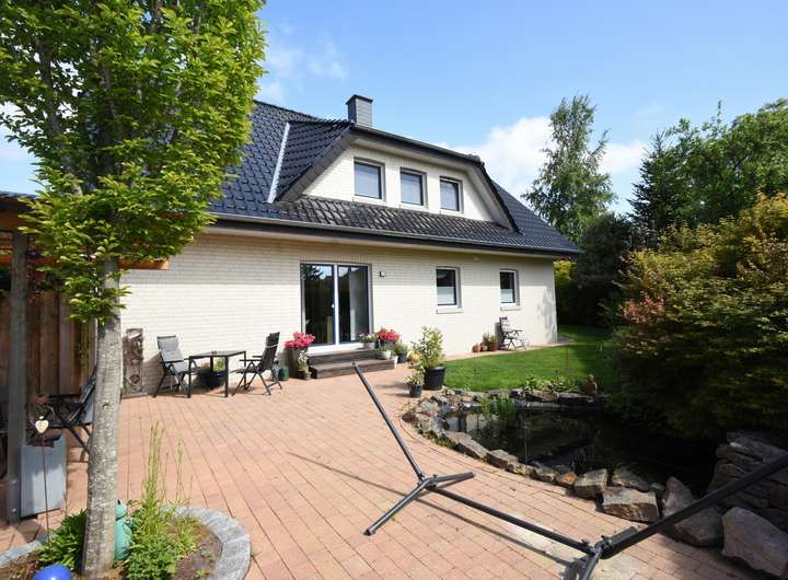 Dieses gepflegte Einfamilienhaus wurde 1998 am Obenende in zentraler Lage auf einem 700 qm großen Grundstück erbaut. Im Erdgeschoss finden Sie ein Büro, ein Wohnzimmer mit Kaminofen, ein Duschbad, eine Küche mit Einbauküche, einen Hauswirtschaftsraum. Im Obergeschoss befinden sich vier Schlafzimmer und ein Badezimmer, welches mit Dusche, Badewanne, WC und zwei Waschbecken ausgestattet. Die Heizung wurde 2017 erneuert. Der Garten ist nach Süden ausgerichtet und bietet durch eine überdachte Terrasse auch die Möglichkeit bei schlechtem Wetter im trockenen zu sitzen. Die Doppelgarage und ein Überdachung für das Holz runden das Angebot ab.
