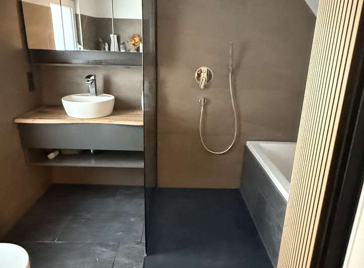 Saniertes Bad, Walkin Dusche, Badewanne, Modernisierte Treppe, Baustoffe 85% Blauer Engel. Rotkalk Putz für ein angenehmes Raumkima, Gäste WC im EG, Großzügigier Hof mit geräumiger Scheune und Wohnmobilstellplatz plus Garage.