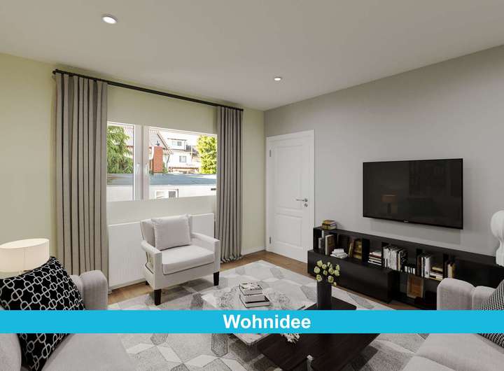 Bitte beachten Sie, dass die beigefügten Grundrisse nicht maßstabsgetreu sind, sondern lediglich der Veranschaulichung dienen sollen. Bei der dargestellten Möblierung handelt es sich um einen Einrichtungsvorschlag. Die mit "Wohnidee" gekennzeichneten Fotos sind Gestaltungsideen und stellen nicht den tatsächlichen Zustand der Räume, des Gebäudes bzw. des Grundstücks dar.