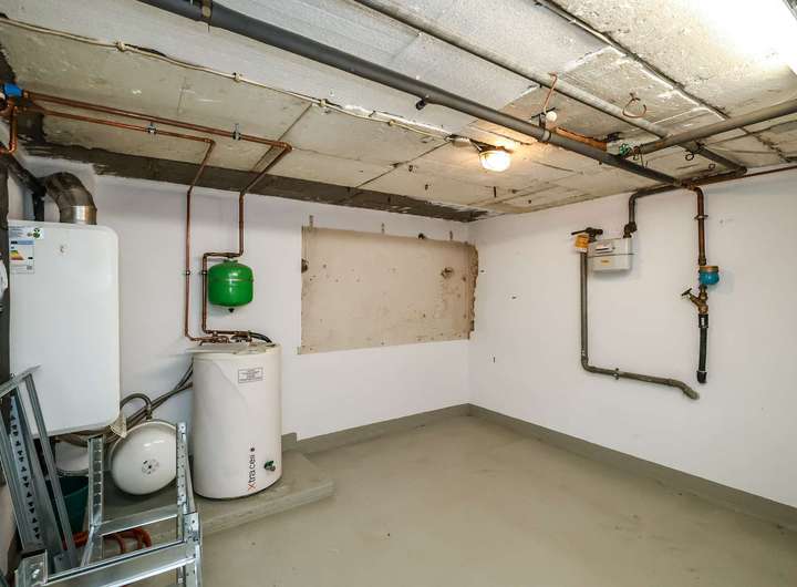 Der Keller bietet mit zwei Räumen großzügigen Stauraum. Zusätzlicher Abstellplatz findet sich auch unter dem Dach, erreichbar über eine Ausziehleiter.