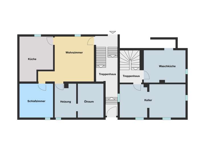 Im ersten Obergeschoss, auf der linken Seite, befindet sich eine weitere Dreizimmerwohnung