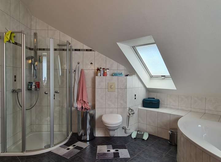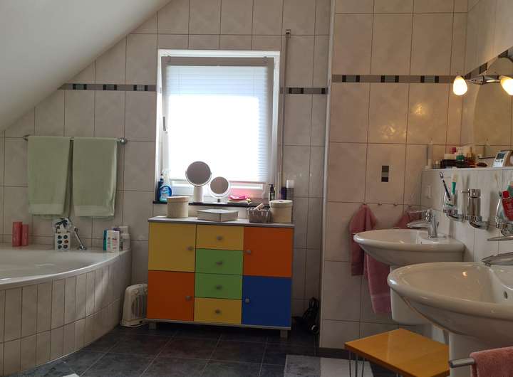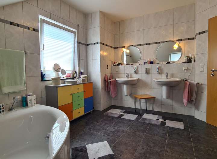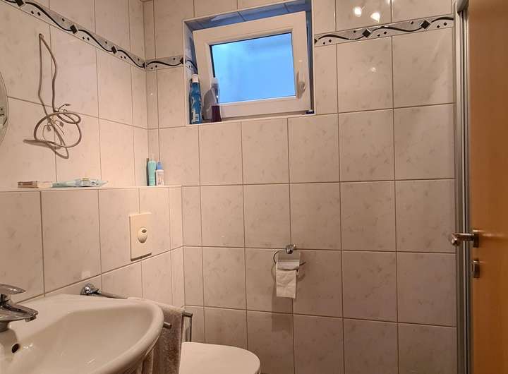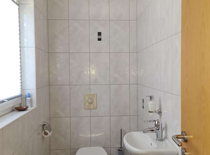 Die beiden modernen Bäder und das Gäste-WC sind gefliest.