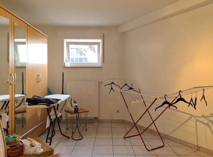 Gästezimmer, ausgebauter Hobbyraum, Hauswirtschaftsraum/Bügelzimmer, Duschbad/Waschbecken/WC, Heizungs- und Hausanschlussraum mit Waschmaschinenanschluss, Flurbereich