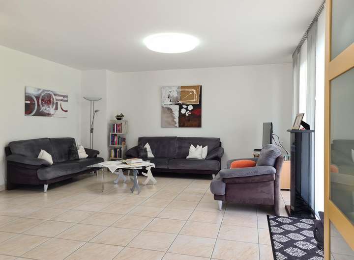 - helle moderne Keramikfliesen im Erd- und Untergeschoß
