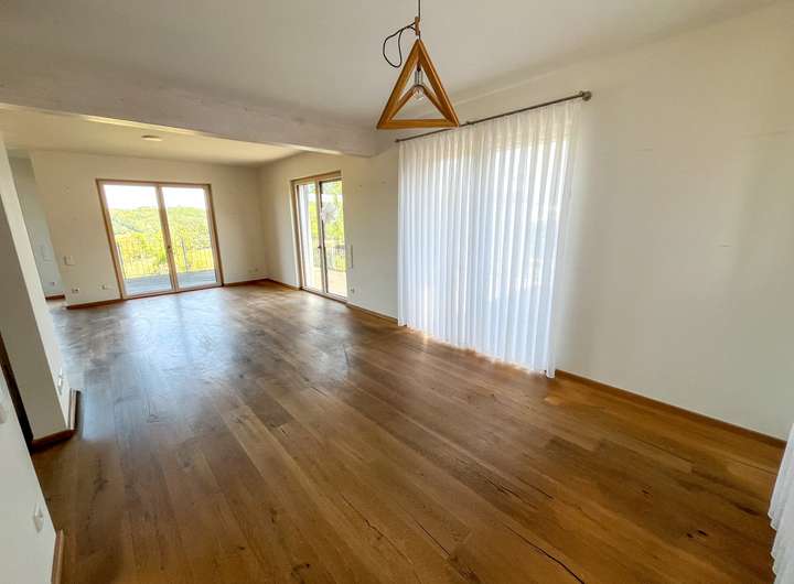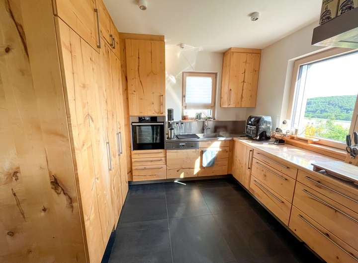 Allgemein: •KfW-40-Effizienzhaus (Baufritz) •Aufzug über alle Etagen •Luft-Wasser-Wärmepumpe (Viessmann) •PV-Anlage (9,75 kWp, Speicher 10 kWh, Hersteller Heckert Solar) •3-fach-Verglasung (Holz/Alu, U-Wert 0,5) •elektrische Rollläden mit Zentralsteuerung •Glasfaseranschluss •Zisterne (6.000 l) •Carport und befestigter Stellplatz Erdgeschoss: •lichtdurchfluteter Wohn-/Essbereich mit Zugang zum Balkon •offene Schreinerküche •Speisekammer & versteckter Stauraum •Gäste-WC mit Dusche •barrierefreier Zugang zum Balkon Dachgeschoss: •vier großzügige Zimmer (Schlaf-, Kinder-, Arbeitszimmer) •großes, modernes Tageslichtbad mit bodengleicher Dusche Untergeschoss: •Einliegerwohnung mit separatem Zugang: Küche, Wohn-/Schlafzimmer, Bad (ca. 51 m²) •Technikraum, Kellerraum Außenbereich: •gepflegter Garten mit Terrasse, kleinem Teich und Gartenhaus •liebevolle Bepflanzung mit hohem Erholungswert
