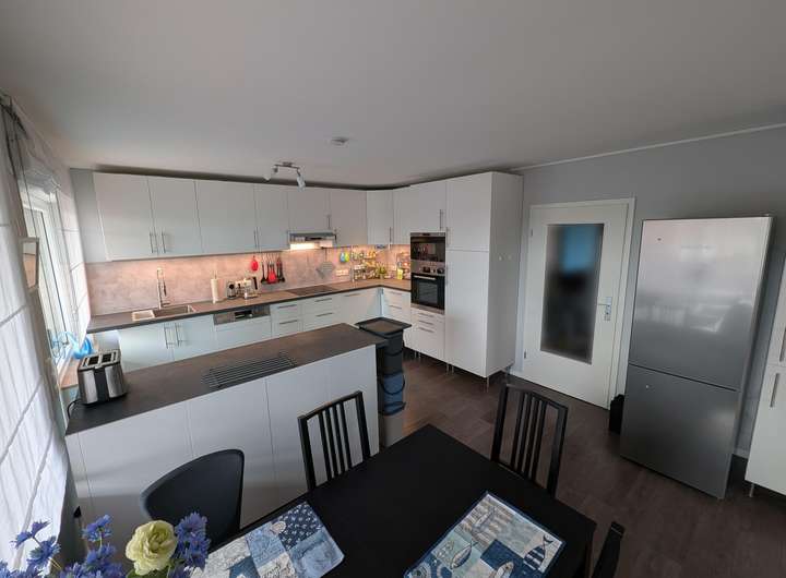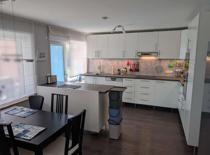 •Große moderne Einbauküche und Kücheninsel inkl. Elektrogeräte (excl. Spülmaschine/ Kühlschrank)