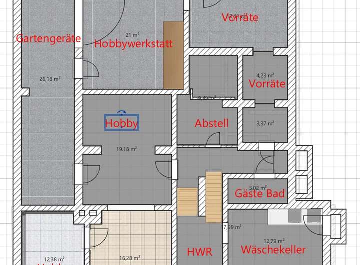 •Hobbywerkstatt (ca. 21 m²) und drei Hobbyräume, beheizbar