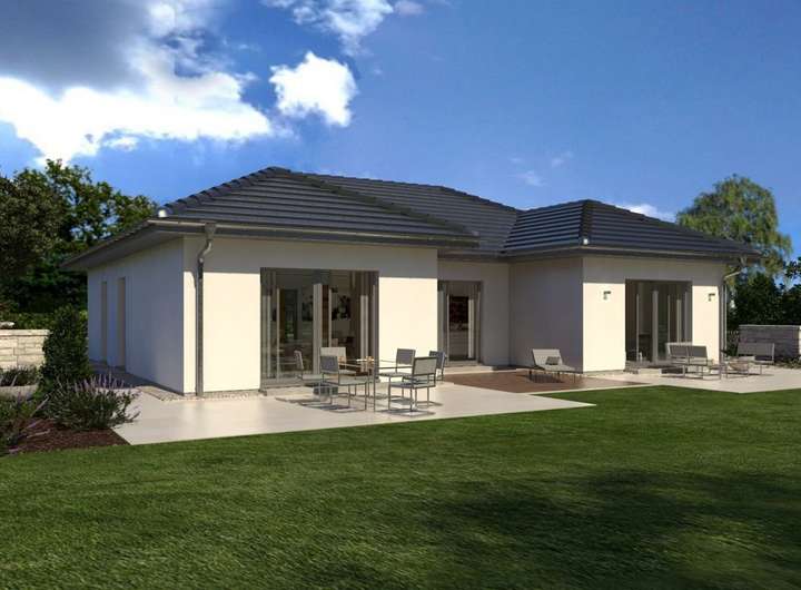 Dieser Bungalow ist in einer Ausführung mit Flach- oder Walmdach erhältlich.