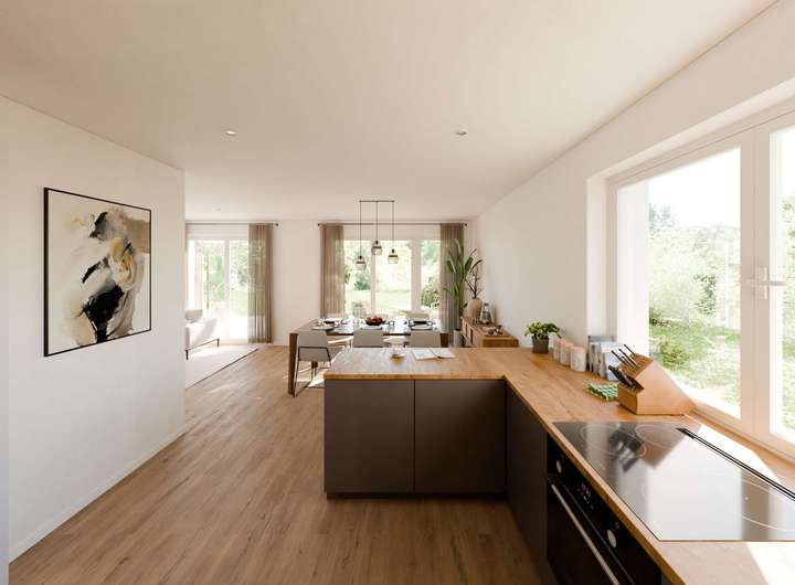 - Wohnbereich: Lichtdurchfluteter Wohnbereich mit offener Küche, ideal für gemütliche Stunden