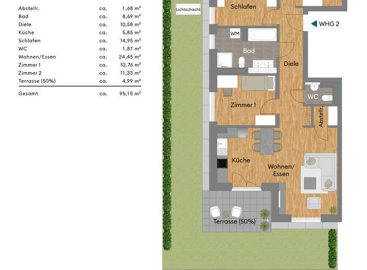 - Alle Erdgeschosswohnungen verfügen über einen eigenen Garten