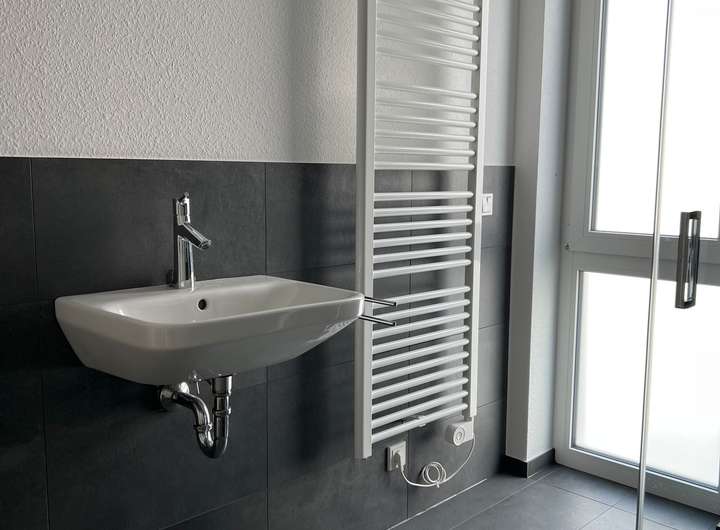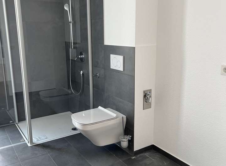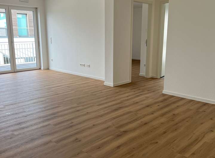Durch den barrierefreien Hauseingang erwartet Sie ein moderner Grundriss mit perfekter Raumaufteilung. Eine hochwertige Ausstattung mit Vinylbodenbelag in Holzoptik, weiss gestrichenen Wänden und einem modernen Bad, Fussbodenheizung, elektrischen Rollläden und Videogegensprechanlage, erwartet Sie. Die Küche mit moderner Küchenmöbeln, ist im Wohnraum integriert und mit Geschirrspülmaschine, Backofen, Ceranfeld, Kühl- und Gefrierschrank ausgestattet. Vom großzügigen Wohnbereich-/Essbereich haben Sie Zugang zum Balkon.